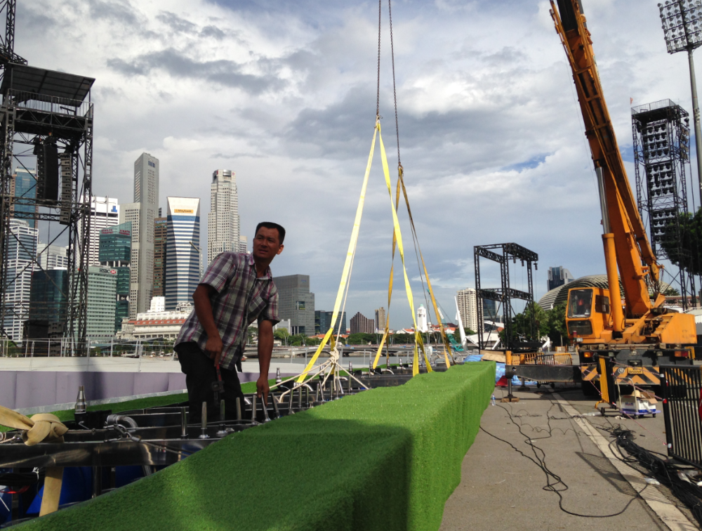 Large stage fountain project for Singapore National Day is build for celebrating the 49th National Day celebrations.